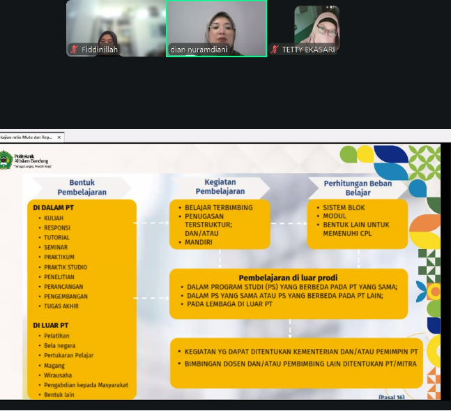 Kegiatan yang dilaksanakan secara daring melalui Zoom Meeting ini mengusung tema “Bedah Permendiktisaintek No. 39 Tahun 2025 & Akselerasi Redesain Dokumen SPMI”. Forum ini menjadi momentum penting untuk menyelaraskan dokumen Sistem Penjaminan Mutu Internal (SPMI) dengan regulasi terbaru, sekaligus memperkuat budaya mutu yang adaptif, inklusif, dan berkelanjutan.
